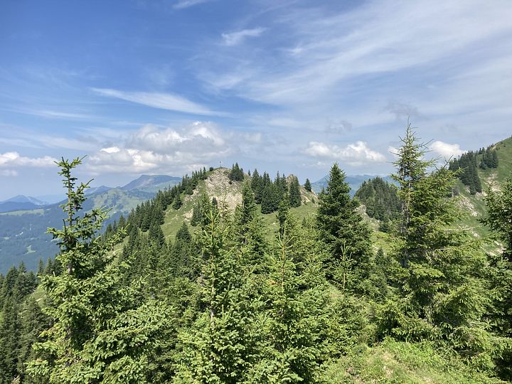 s'Gipfl-Bierle (etwas im Abstieg im Schatten)