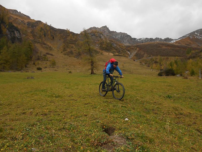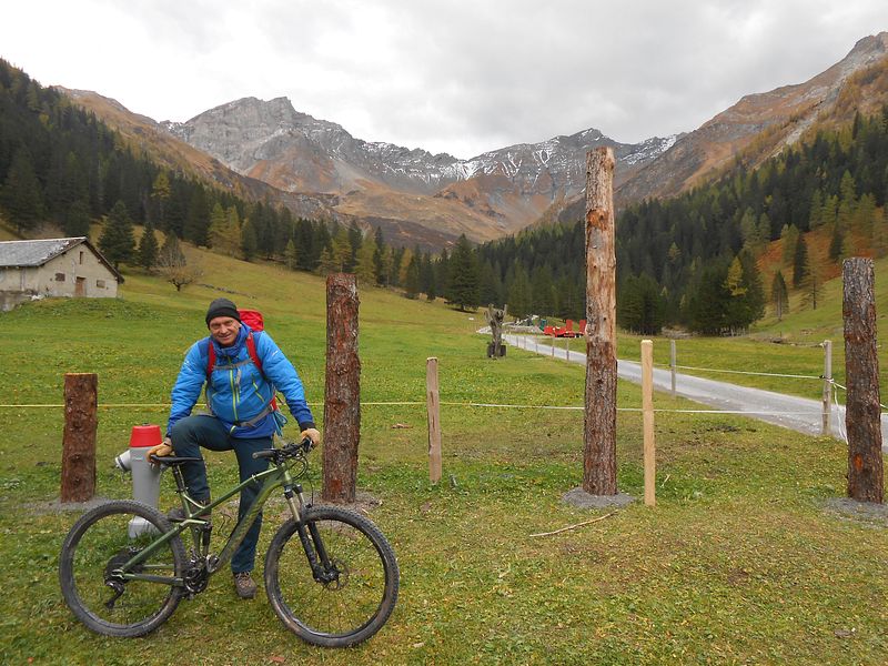 durch Valüna nach Obersäss mit MTB. Aufstieg über Notz zum Ijesfürggli.